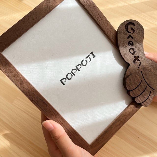 POPPOJIは、楽しく前向きに生きる人、自分を変えたい人を応援するブランドです。制作のきっかけは、大切な人が賞状をもらった時でした。 「よくやった、頑張ったね。おめでとう」うれしくて、心から褒めてあげたい。そんな想いを添えた額縁が欲しくて、自ら制作したのが始まりです。ポジティブでいるとイイコトが沢山ある。優しさや愛する心が広がって、平和な地球になりますように。どこかの誰かのためになることを願って、一つひとつ手作りしています。